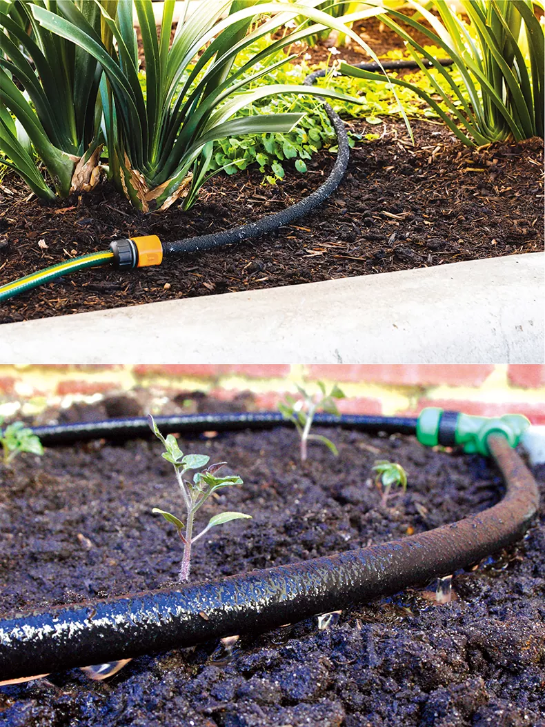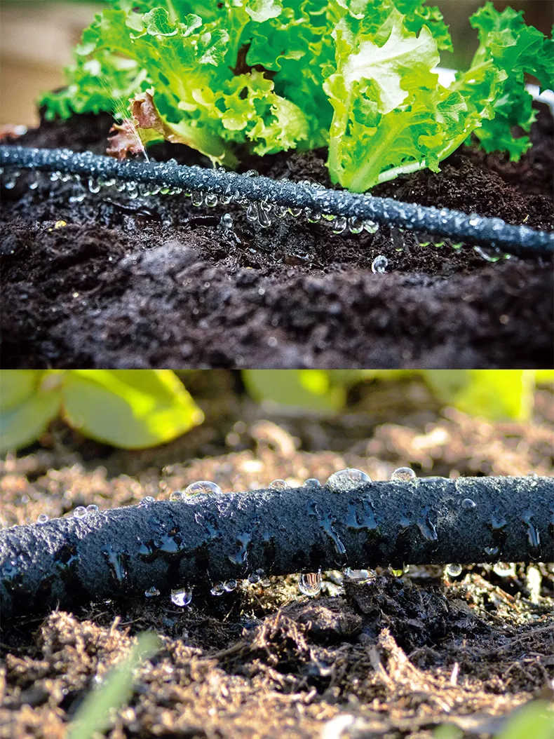 خصائص خرطوم التسرب: 1、ملمس خشن مع مسام صغيرة - يبدو جدار الخرطوم خشنًا عند اللمس، ويتميز بالعديد من المسام الدقيقة لانبعاث الماء بشكل ثابت. 2. التحكم في التدفق القابل للتعديل - يمكن تنظيم إخراج المياه باستخدام مقيدات التدفق (ألواح الفتحة). 3 、 انبعاث كامل الطول - يطلق الخرطوم بأكمله الماء بالتساوي، مما يسمح بوضعه المباشر على طول مناطق جذور النباتات للري المستهدف.