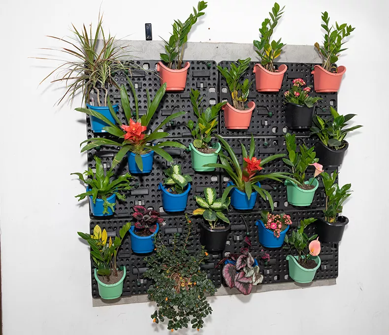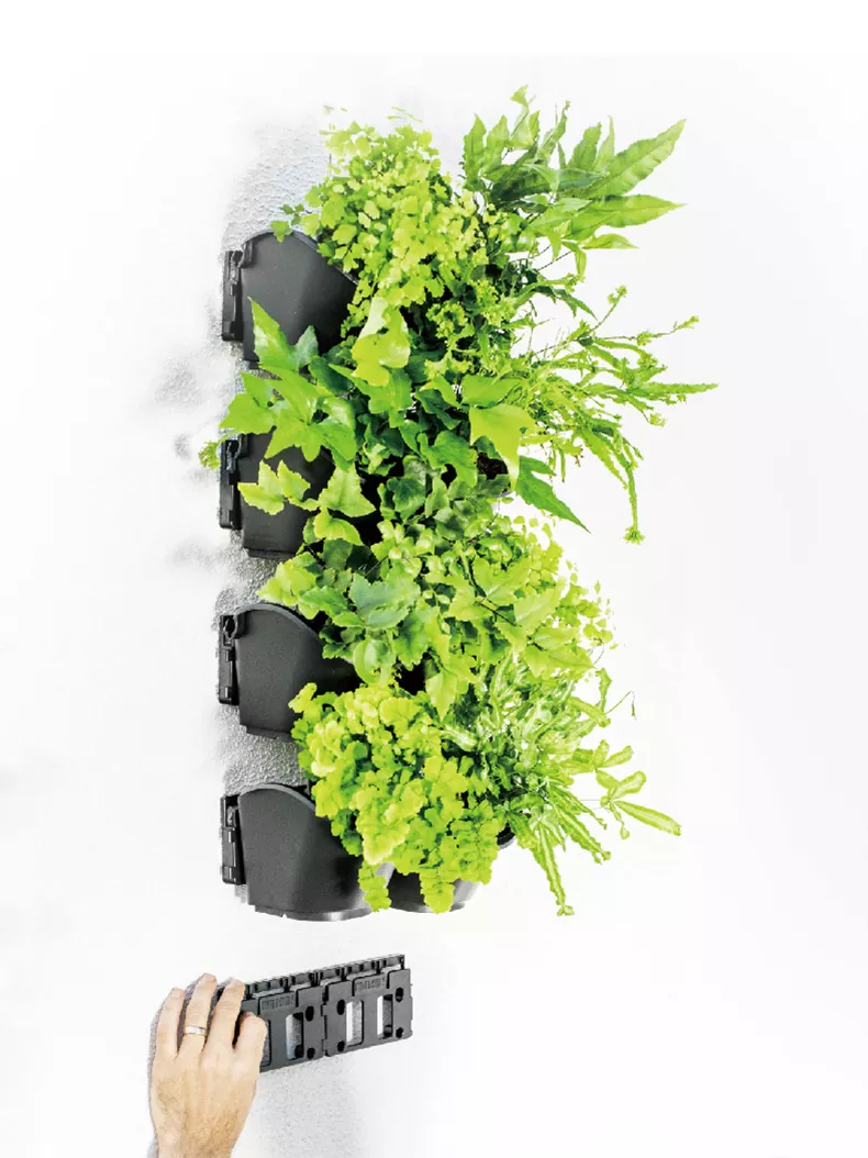 وعاء زرع الزراع ذاتي السقاية الداخلي هذا عبارة عن مجموعة من دعامات الحديقة الجدارية العمودية من Watex والجدار الأخضر المحمول المعدني من Watex.