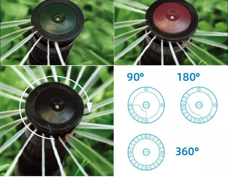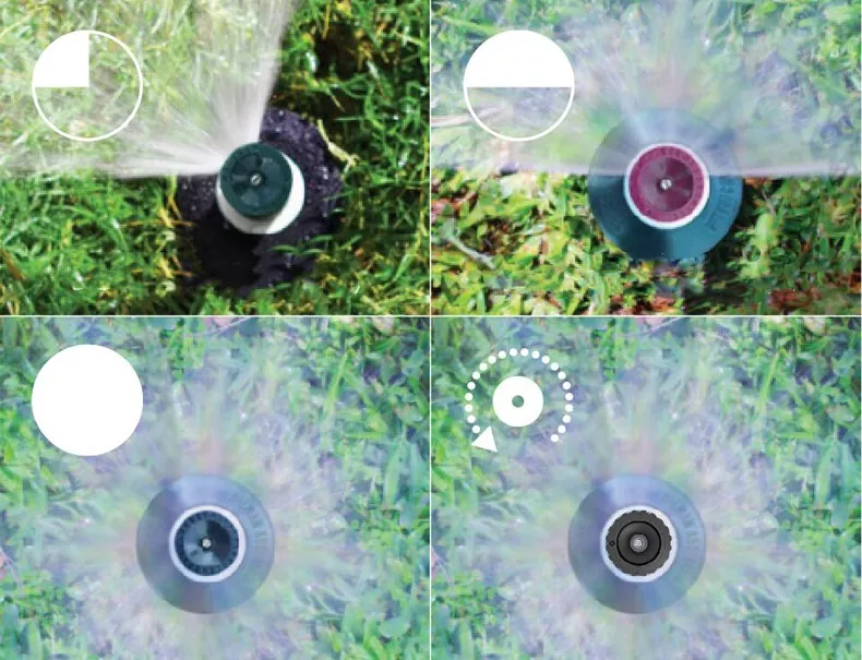 أربعة خيارات لرأس الرش الثابتة: 90 درجة، 180 درجة، 360 درجة