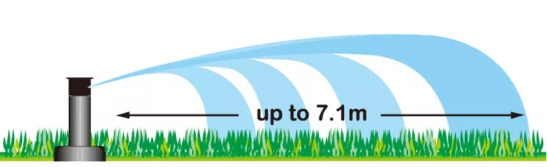 رؤوس رشاشات دوارة يصل مداها الأقصى للرش إلى 7.1 متر.