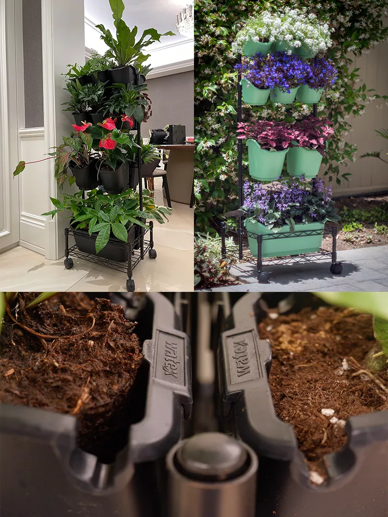 يساعد نظام الري المزود بإطار Metal Mobile Green Wall المزدوج على توزيع المياه بالتساوي من خلال نظام التنقيط.