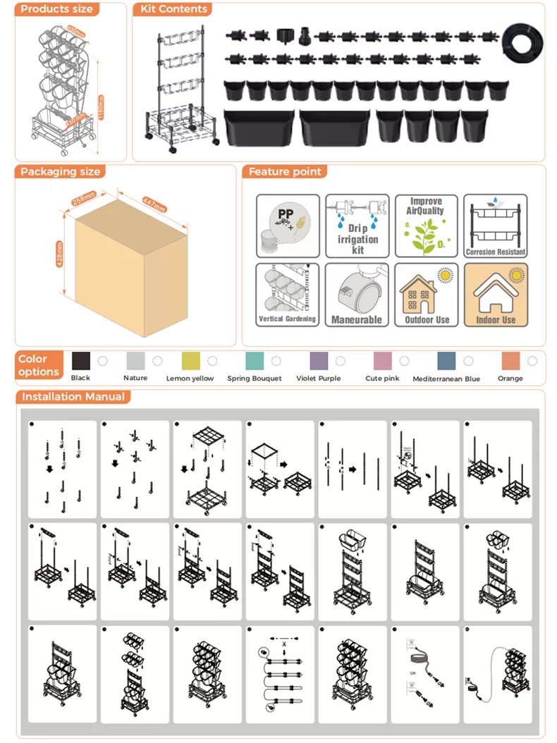 يعد الإطار المزدوج ذو الجدار الأخضر المعدني المتنقل مناسبًا تمامًا للحياة الحضرية، وهو صديقك لجميع احتياجات البستنة الحضرية الخاصة بك. إن قابلية نقل هذا الغراس متعدد المستويات مع نظام الري الكامل يجعله مثاليًا للبستنة الموفرة للمساحة. قم بزراعة الأعشاب أو الخضار أو الزهور المفضلة لديك أو أضف بعض النباتات المنقية للهواء لتنظيف الهواء في منزلك ونقلها إلى أي مكان تذهب إليه.