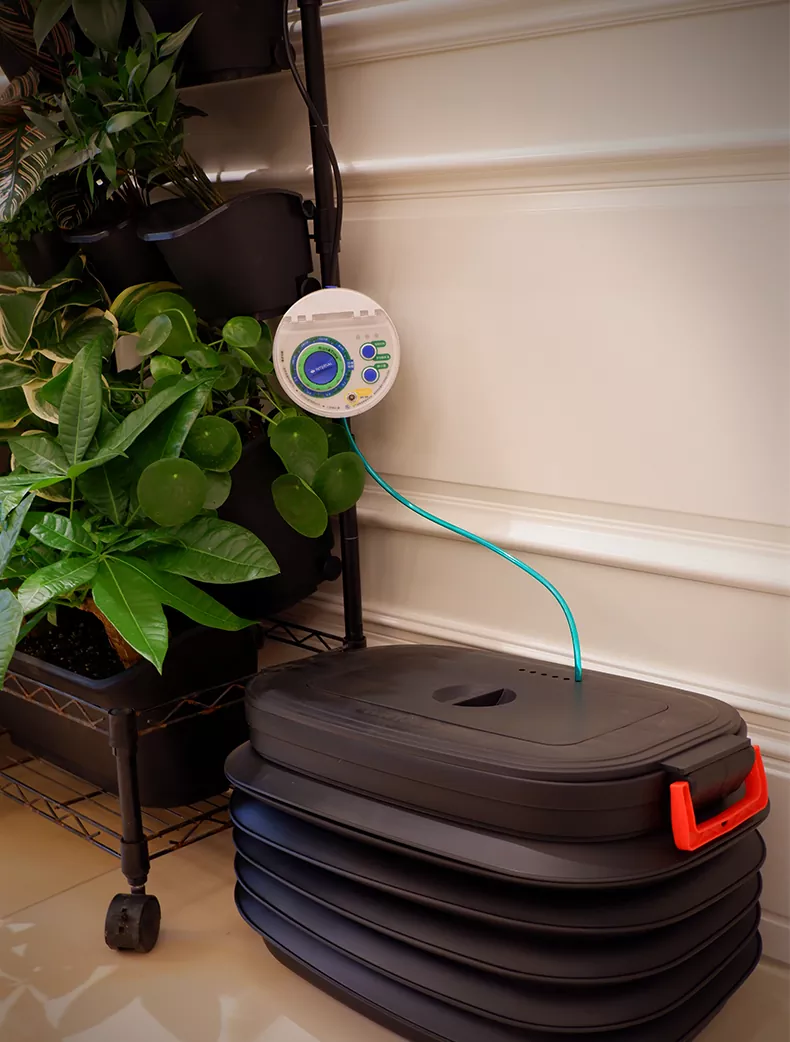 قم بحل مشكلة مصدر المياه لديك، حيث تتميز مجموعة الري بالتنقيط Smart Watering Aquamatic بتصميم جسم دلو قابل للسحب بسيط وأنيق لسهولة التخزين. عندما يتم فتح خزان المياه، يمكنه استيعاب ما يصل إلى 37 لترًا. غطاء الخزان المحكم يحافظ على البعوض بعيدًا.