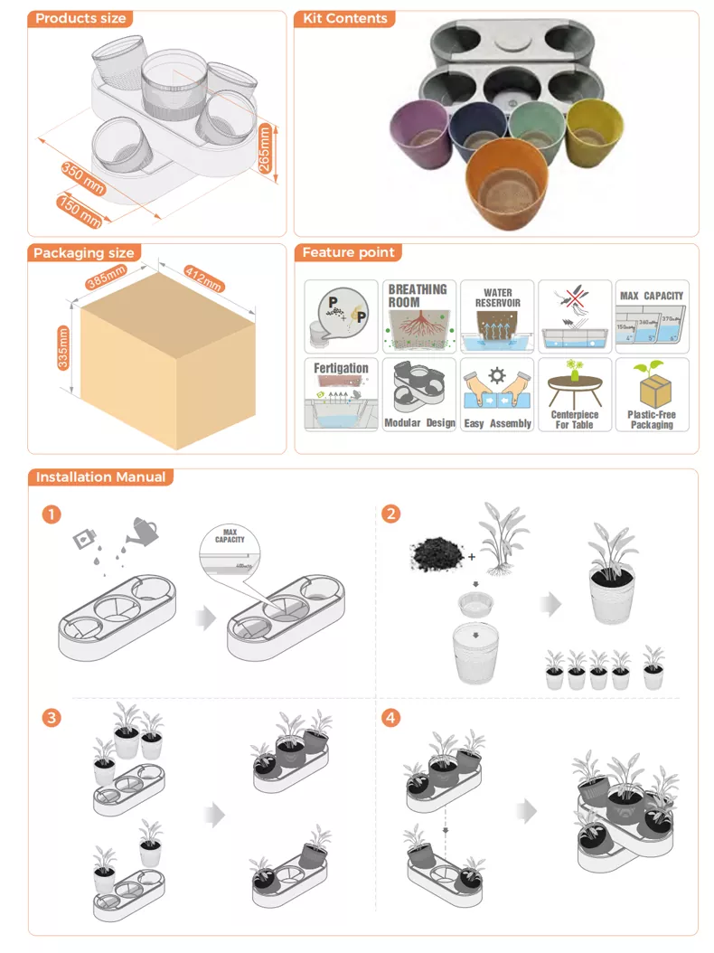 أواني الزهور مناسبة لتزيين المنزل. يمكنك زراعة النباتات الخضراء أو الخضروات المفضلة لديك فيها. الري مريح للغاية. تحتاج فقط إلى إضافة الماء أو محلول المغذيات إلى قاعدة تخزين المياه. يتميز الجزء السفلي من وعاء الزهور بتصميم مجوف، مما يسمح له بامتصاص الماء بشكل أفضل.